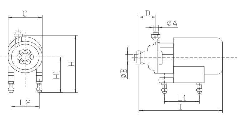 | 型號(hào) | A | B | L | LI | L2 | H | HI | C | D |