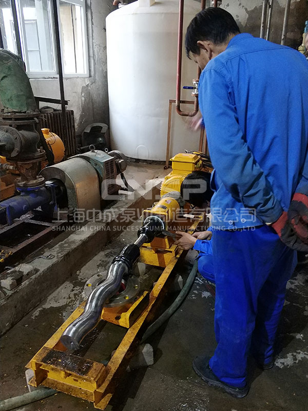 中成泵業(yè)技術(shù)工程師首先為客戶演示了螺桿泵的正確拆機順序,并進行現(xiàn)場指導,確??蛻裟軌蜃灾鬟M行操作和使用,同時還對現(xiàn)場的機器進行調(diào)試。因為客戶購買的螺桿泵使用時間較長,導致易損件——定子磨損,在中成泵業(yè)技術(shù)工程師的建議下,更換定子之后機器成功啟動并正常運行。